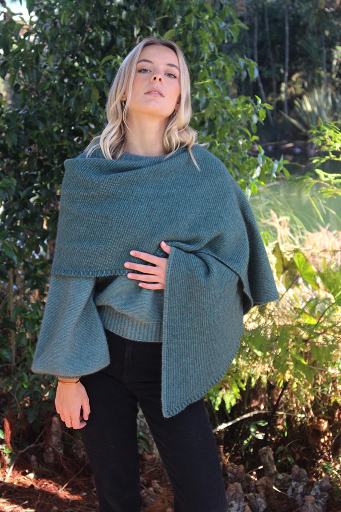 A generous two-toned scarf that has been knitted on the diagonal, finishing in a point at either end. Wear as a traditional scarf or wrap. Knot the ends together to create an infinity scarf.