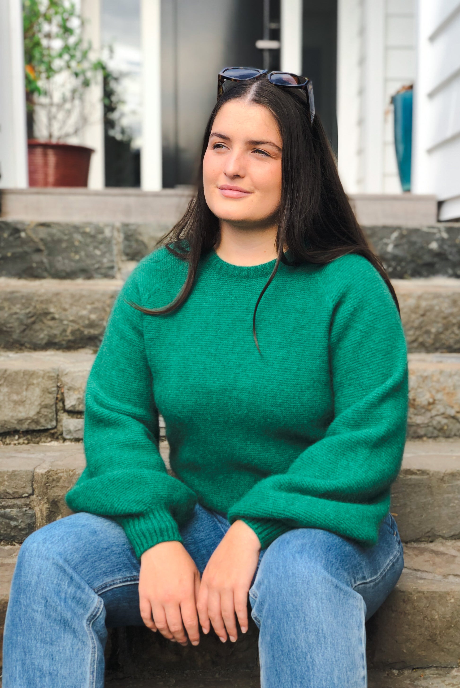 A classic crew neck knitted in purl stitch, with balloon sleeves. Made from a luxurious blend of 40% Possum, 50% Merino and 10% Nylon.