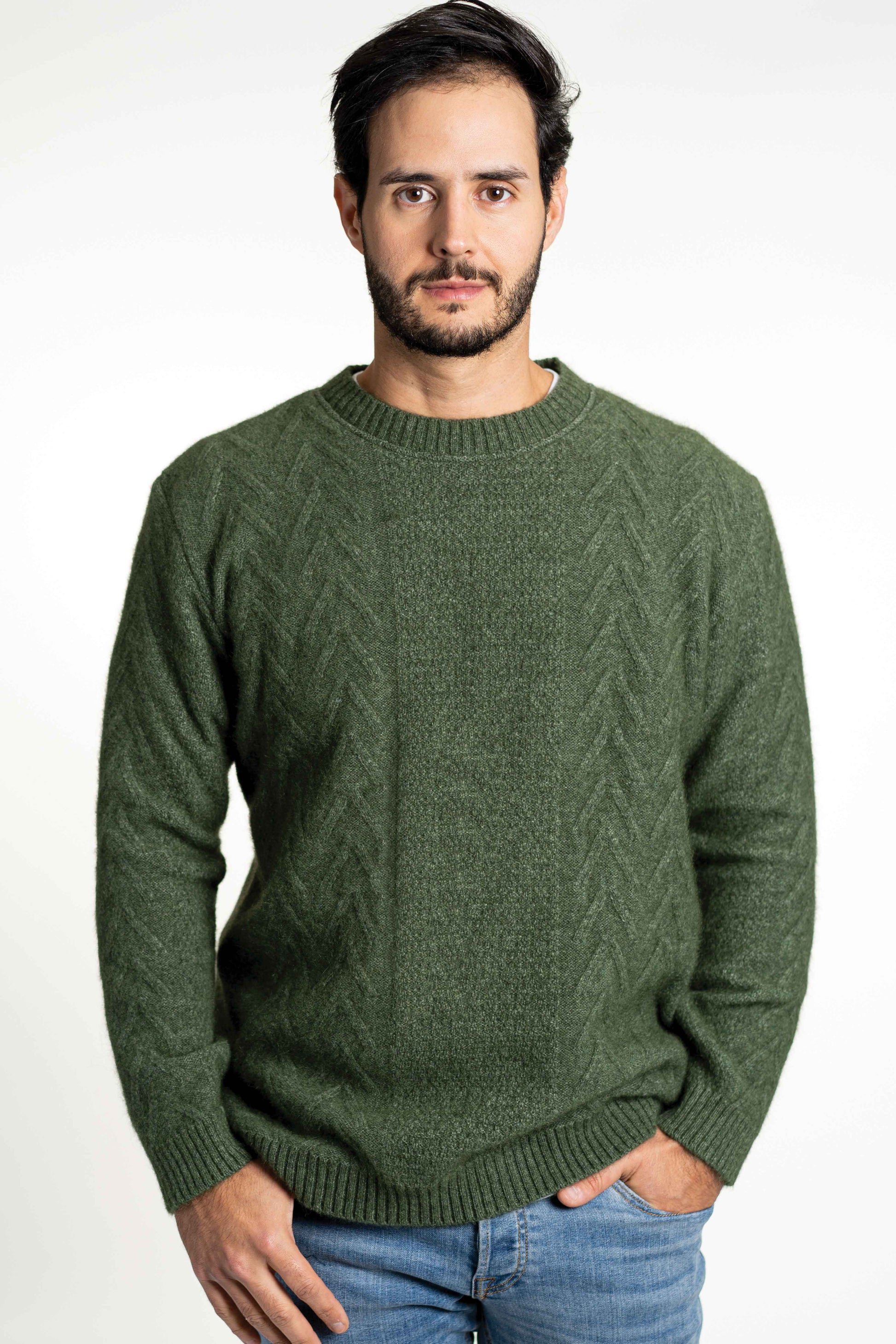 A Crew Neck Style Featuring A Stunning Textured Aran Pattern On The Front And Sleeves.
