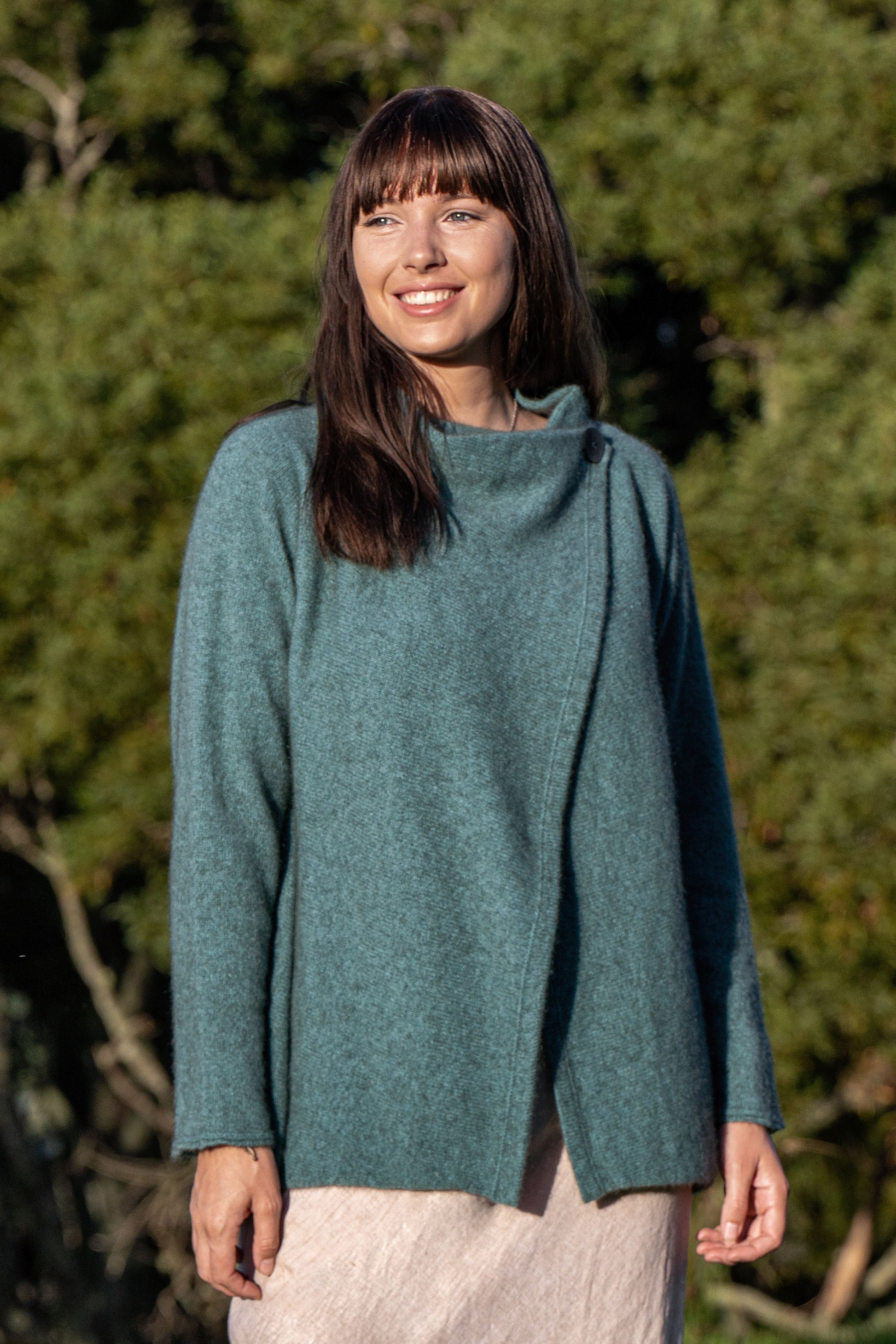 A versatile jacket that can be worn unbuttoned for 2 different styles. Made from a luxurious blend of 40% Possum, 50% Merino and 10% Nylon.