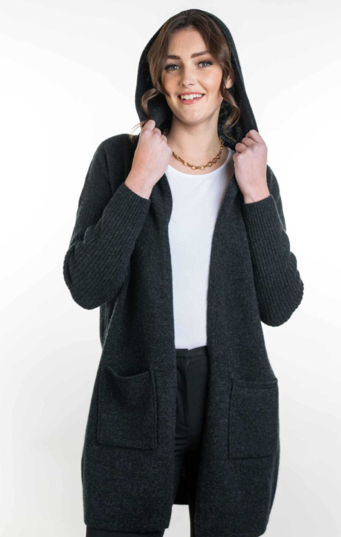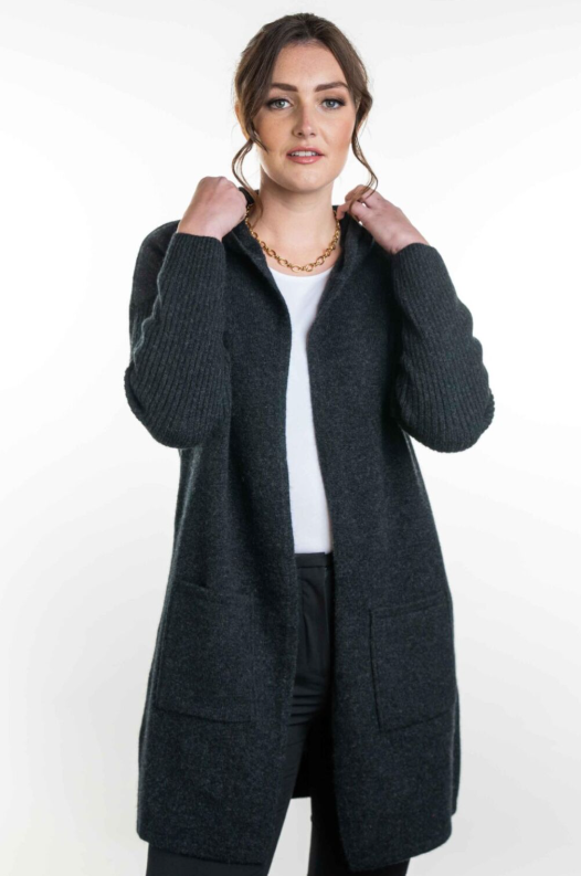 HOODED LONGLINE CARDIGAN