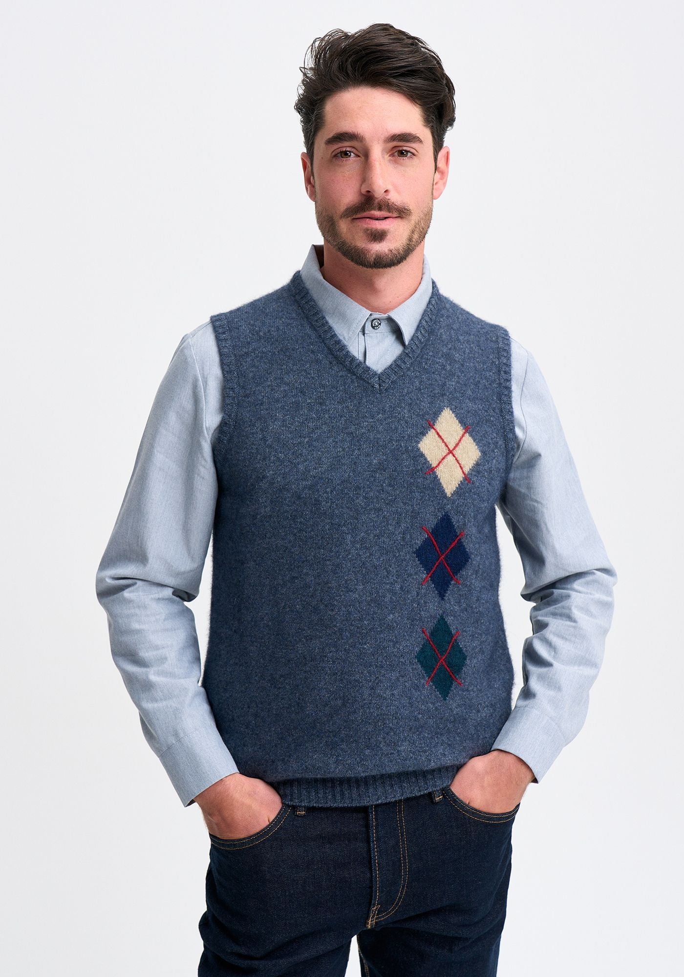 This classic pullover vest features argyle detailing with hand-stitched cross detail. Team it with a shirt or merino layer to dress it up or down for the office or a day on the green.