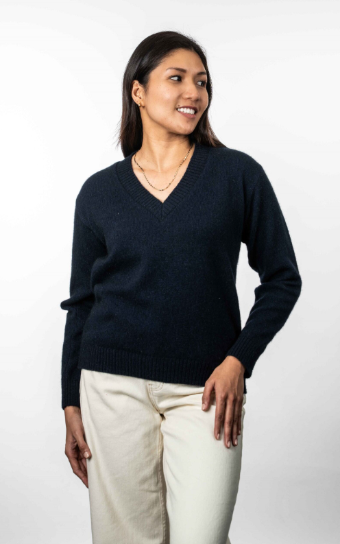 A classic V neck jumper with ribbed cuffs hem and neckline.
