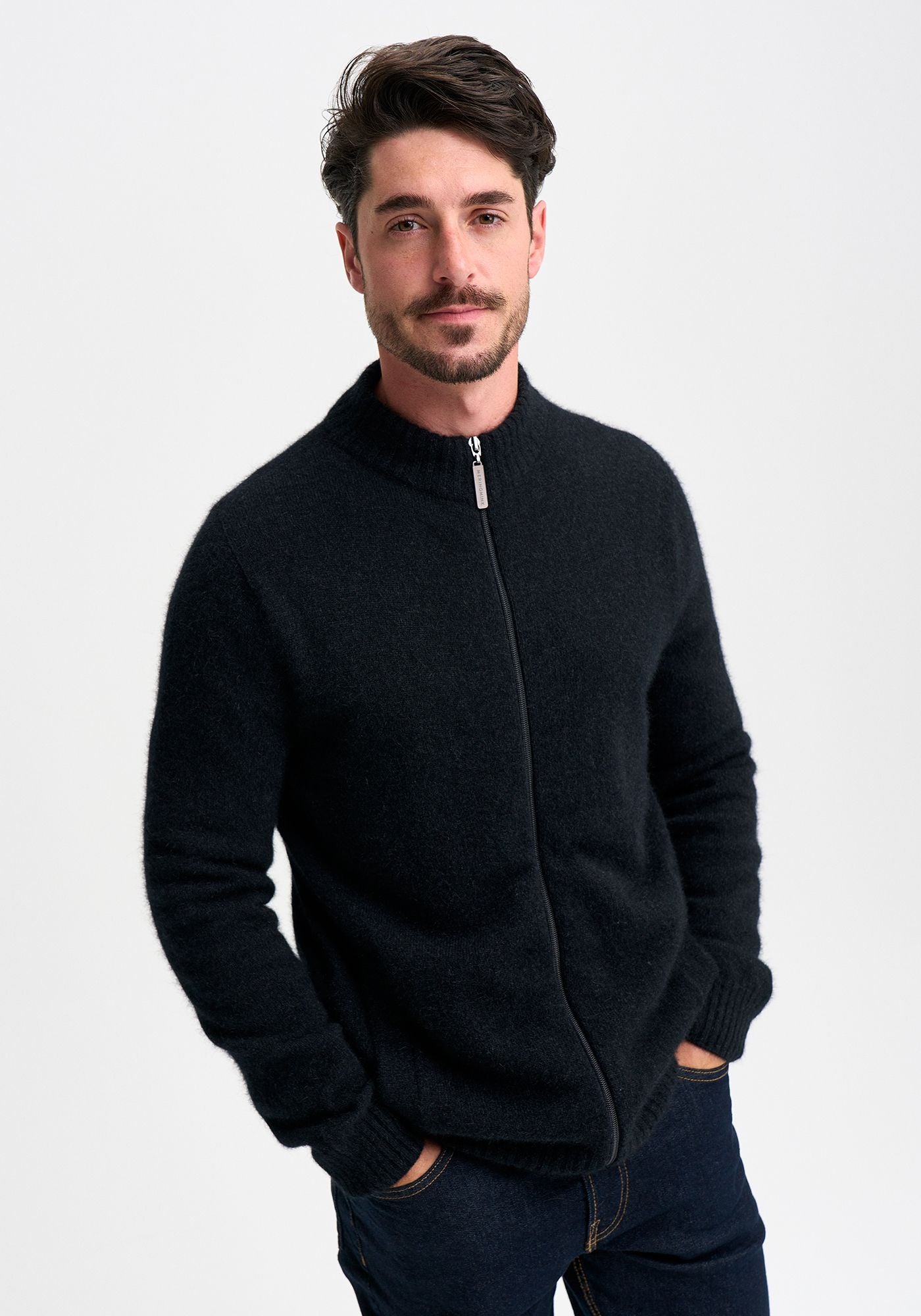 This classic jacket is a go-to piece with pockets and contrast striped collar. Featuring a Merinomink zip pull, its ready for whatever the weather throws at you.