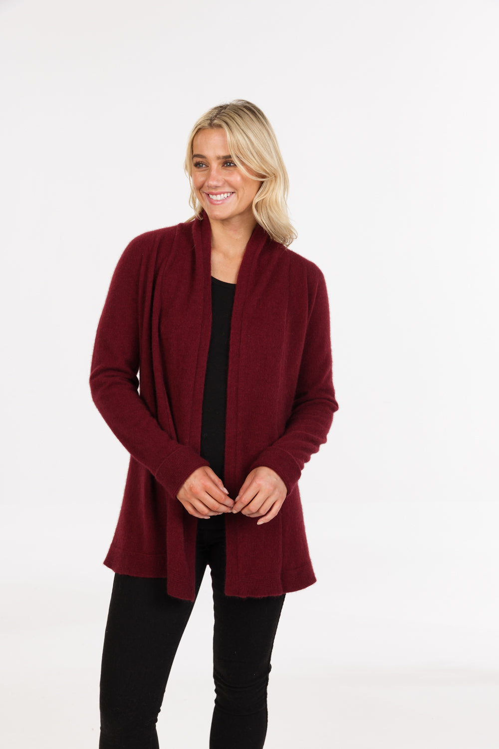 Relaxed fit open jacket made from a luxurious blend of 20% Possum, 70% Merino and 10% Silk.